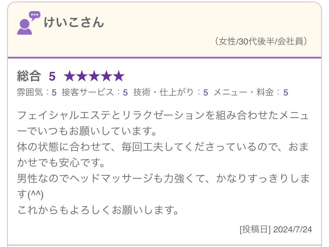新しい口コミをいただきました。